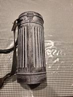 Duits gasmaskerbus wo2, bekend als de 'blechbüchse m38' mooie patine van wintercamo nog aanwezig - ooit gevonden in ovifat. Mooi gestempeld , geen masker.