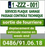 Divers service en relation avec l'automobile service passage contrôle technique déplacement de véhicules avec plaques garage.