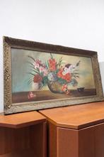 Prachtig handgeschilderd olieverfschilderij met een kleurrijk bloemstilleven in vaas. Het schilderij is gesigneerd door “marco” (linksonder) en geplaatst in een fraaie, rijk gedecoreerde klassieke lij