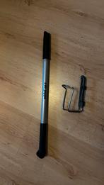 Opspan bandenpomp om in het kader van bijvoorbeeld een retro koersfiets te spannen. Komt samen met een bijpassende zefal bidonhoud
