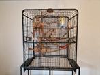 Twee valkparkietjes met kooi en accessoires.