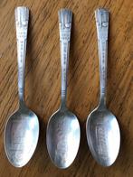 Lot de 3 cuillères à café, plaquées argent, de l'exposition universelle de 1939 à new york. Chaque cuillère a une image gravée de bâtiment d'exposition de la ville de new york. Fabriqué par wm