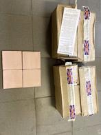Tegels: merk: marlborough. Type: mother of pearl 13 x 13 cm 4 dozen, 30 st. Per doos totaal: 2,00 m2 best te plaatsen zonder voeg, de vorm van de tegel zorgt zelf voor een voegje. (Nieuw 65 euro/m2)