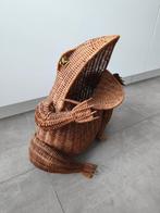Corbeille à revues ou porte-revues vintage en rotin et osier tressé en forme de grenouille, un design des années 1970 d'olivie