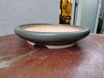 Ronde bonsai schaal. Afmetingen binnenkant 325 x 55 mm. Glazuurd. Groen gtijs.