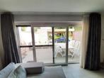 Volledige set: 1 dubbele witte aluminium gordijnrail van 400cm (muurbevestiging) 2 glasgordijnen (elk 200cm x 245cm) 2 overgordijn