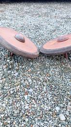 Paires de roues anciennes, de quoi ? Je l'ignore. Constitute de deux tôles embouties, un axe sur roulement et un bandeau en caoutchouc plein. Faire offre. A enlever sur 6870 saint hubert contact :