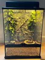Exo terra terrarium met afmetingen 45x45x60. Voorzien van bodem verwarming en lampenkap. Inclusief inrichting