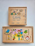 Mémoire et apprentissage du comptage jusqu'à 10 - complet mais largement utilisé - à partir de 3 ans + boîte à puzzle en bois contenant 5 puzzles de 5 pièces chacun - en bon état - dimensions 20x1