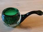 Pijpaanstekerhouder in murano-stijl, gemaakt met de 'bullicante' (bubbel) techniek. Het object is gemaakt van groen en transparant glas. De 'bullicante' techniek creëert gecontroleerde