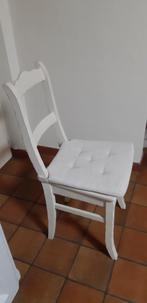 Te koop 4 eiken stoelen ,kleur,parelwit maar mogelijlheid om in eigen kleur te verven incl zitkussens. Vraagprijs: 50 euro voor set van 4 stoelen