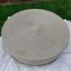 Table basse en osier de 1m20 de diamètre et 40 cm de hauteur. Convient très bien en terrasse