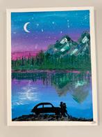 Mooie schilderij 33x40cm geschilderd door een kennis, mooie afbeelding van een tof landschap met een verliefd koppel.