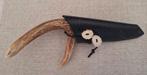 Manche constitué par un bois de cerf bifide, étui cuit noir avec boutons en bois de cerf pour fermeture avec un lacet sam cox (usa) lame 130mm