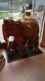 Deze houten olifant is een 40-50 jaar oud, afkomstig uit thailand. Handgesneden uit tropisch hardhout. 75Cm groot. Dus best groot, en weegt wel wat..