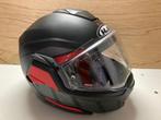 Hjc i100 beis mat zwart – rood, maat m, gekocht in december 2023. Deze helm is een touring flip-back helm van polycarbonaat met in