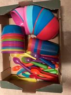 Allerlei eetgerei voor je peutertje , kommetjes,bekers, peuterbestek …alles zogoed als nieuw . Gerief was aangekocht door oma voorde kleinkinderen . Alles samen te koop voor 10 euro
