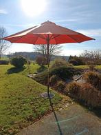 Grand parasol droit + pied en fonte en très bon état. Hauteur 270cm. Envergure 320cm. Housse fournie. Peu servi car pergola. A saisir pour 70€ 0474/66 29 09 pas de sms