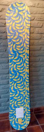 Een nieuw (in plasticfolie verpakt) snowboard, speciaal ontworpen door britto 'chiquita banana's snowboard' is wat je