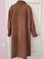 Manteau d'hiver longue , luxe, en cuir véritable pour femme. Extérieur : cuir suédé marron (tendre et doux) avec de belles cou