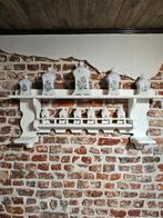 étagère murale en bois blanc hauteur 50cm. Largeur 1m10 avec 11 pots + couvercles en delft fabrication main.