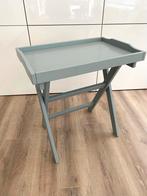 Blauw/grijs bijzettafel (ikea) met afneembaar dienblad. Gebruikt maar in zeer goed staat. Onderstel is inklapbaar. Enkele kleine beschadigingen (zie foto’s). Afmetingen met dienblad: -hoogte: 61,5cm,