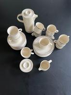 Vrij compleet ontbijtservies , beige met bruine lijntjes uit de jaren 60-70 gemerkt: brendan - erin stone - made in arklow pottery ireland 11 tassen 1
