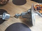 Superbe suspension industrielle en aluminium brossé avec globe en verre transparent. Design authentique inspiré des lampes d’ateli