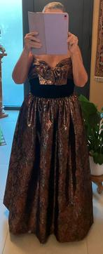 Prachtige stof brokaat, kleuren : brons, goud, zwart afgewerkt met zwart fluweel(inclusief kort vestje) op maat gemaakt maat 38/40, 1 x gedragen voor trouwfeest voor personen +/- 1,70m groot