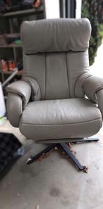 Tres beau fauteuil en cuir beige, fauteuil relax cosyform small, manuelle, pied métallique en étoile noir anthracite (63). Revetement 24longru silber cuir appui tête flexible extenion pieds repliable
