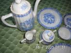 Zeer oud mooi koffieservies china bleu 12 personen zeer licht porselijn en in uitstekende staat. Genummerde onderdelen koffiekan m