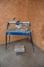 Carat tafelzaag (nat zagen) amper gebruikt. Tafel op poten is opplooibaar. Kan ook onder een hoek zagen.