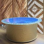 Table de salon maya, avec plateau en verre et miroir infini. Eclairage led avec alternance de couleurs. La table est munie de 4 roulettes dimensions :