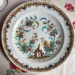 Grand et rare plat delft polychrome de la manufacture boch keramis la louvière, produit à la fin du 19 ème siècle par l'atelier " chambre des peintres " signature bfk b.f.k 3 lettres ble