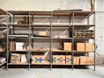 Met legplanken 104cm x 65cm. 2 Rekken beschikbaar. 1 Is reeds gedemonteerd. 1 Moet de koper demonteren. Buizen : 42,4mm, 4mm wanddikte gegalvaniseerd staal. Hoogte tussen plank en buis er boven (vak-h