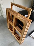 Schilderij-frame's in massief hout, 100x100cm, voor canvasdoek + bijhorende kaders 105x105x5cm > 3 stuks beschikbaar, 2 met zwaar frame en 1 met lichter frame. Idem 80x120cm, lichter frame, bij