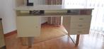 Bureel wit 1.36 X 0.65 X 0,76 hg kan aan twee zijden gebruikt worden. Voorkant : links een afsluitbaar kastje en rechts 3 lades. A
