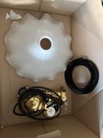 Een up en down antieke lamp met katrol / tegengewicht, in blinkende messing. Plafondstuk - gewicht - lampenvoet zijn verbonden doo