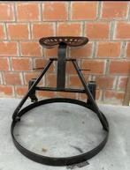 Stoelproject opgebouwd uit zit van oud landbouwtuig, remorkonderdeel en ijzeren wiel