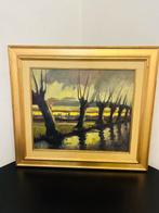 Prachtig schilderij van een belgische kunstenaar in een gouden houten lijst.af te halen in roeselare of via post,67/60 cm