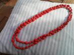 Superbe collier en perles de corail, irrégulières, d'un très beau rouge vermillon, à porter simple en sautoir (138 cm) ou double ou triple rang (il y a un fermoir). Très peu porté, juste pour quel