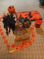 Halloween pakket, deurmat, heks, pompoenmandje gevuld, papieren lamp, batterij te vervangen. Scarecrow, snoepmandje, slingers . Af