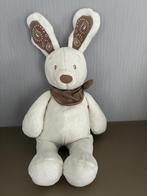Leuke knuffel in zachte pluche, wit met binnenkant oren en sjaaltje in bruin-wit motief wasbaar op 30°c 50cm totale lengte van oor tot poot vraagprijs: 5,00 eur