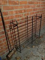 Stevig ijzeren wijnrek, te bevestigen aan de muur. Afmetingen: hoogte 98 cm; diepte 28 cm; breedte 100 cm.