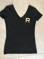 Zwart shirt met gouden print v-vormige uitsnijding voor en achterzijde