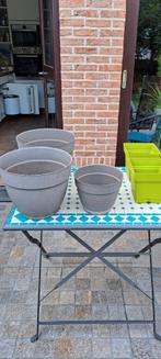 Pots de fleurs plastique avec réservoir .2 Ronds hauteur 25cm colori taupe( 4€ pièce).1 Rond hauteur 18cm colori taupe (3€pièce)et 2 carré hauteur 18cm colori pistache (3€ pièce)a venir