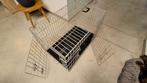 Hondenbench in gebruikte staat. Bodemplaat vertoont barsten maar is netjes met stevige tape afgeplakt zodat het geen gevaar is. Be