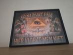 Oude prent "god ziet mij hier vloekt men niet" in mooie staat