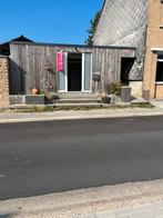 Maison conteneur composite divisée comme suit : entrée ouverte, connexion directe à la salle à manger et à la cuisine et au salon intégrés, la salle de bain avec douche et toilettes est présente, la d