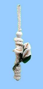 Porte bonheur , ver bonheur , ver fleurs blanches , coton brillant , hauteur totale 15 cm coton blanc, fleurs artificielles